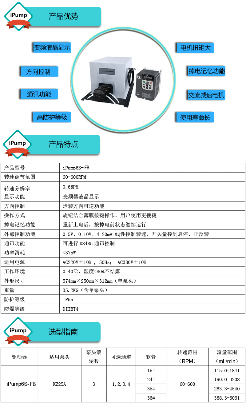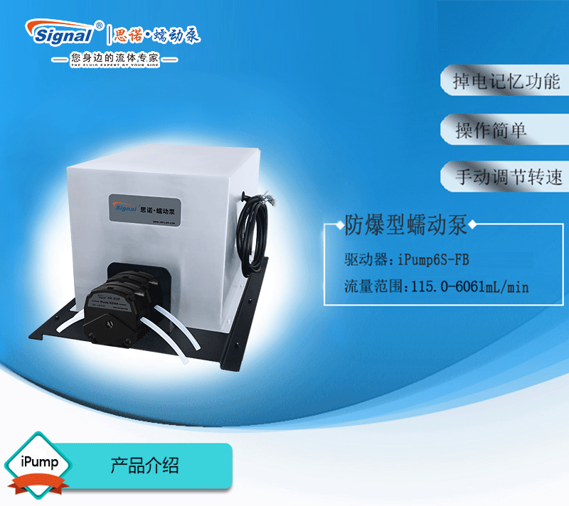 流量范圍:115.0-6061mL/min 免維護(hù)交流防爆減速電機(jī)驅(qū)動(dòng),變頻器調(diào)節(jié)轉(zhuǎn)速 電機(jī)扭矩大,可級(jí)聯(lián)雙泵頭 防爆等級(jí)DIIBT4,適合易燃易爆環(huán)境使用