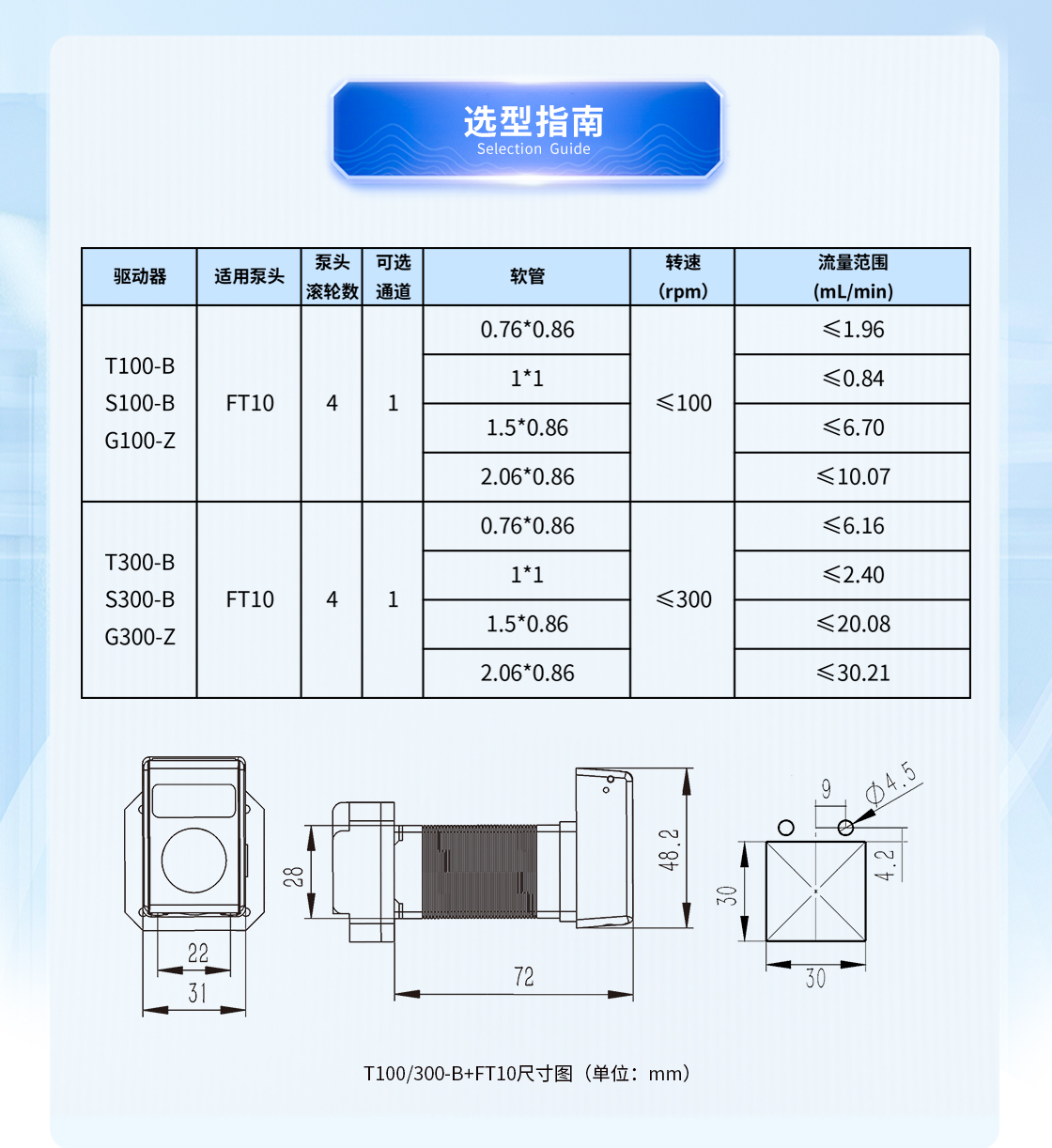 1.流量范圍:<30mL/min 2.控制與泵頭一體化設計,整體更加緊湊 3.上蓋與壓塊聯動機構,安裝軟管更方便 4.彈管壓塊,可適配多種軟管 5.步進電機驅動 6.透明觀察窗可方便查看泵頭運行狀態 7.開蓋傳感器(選裝):泵蓋打開,自動報警或:停止運行