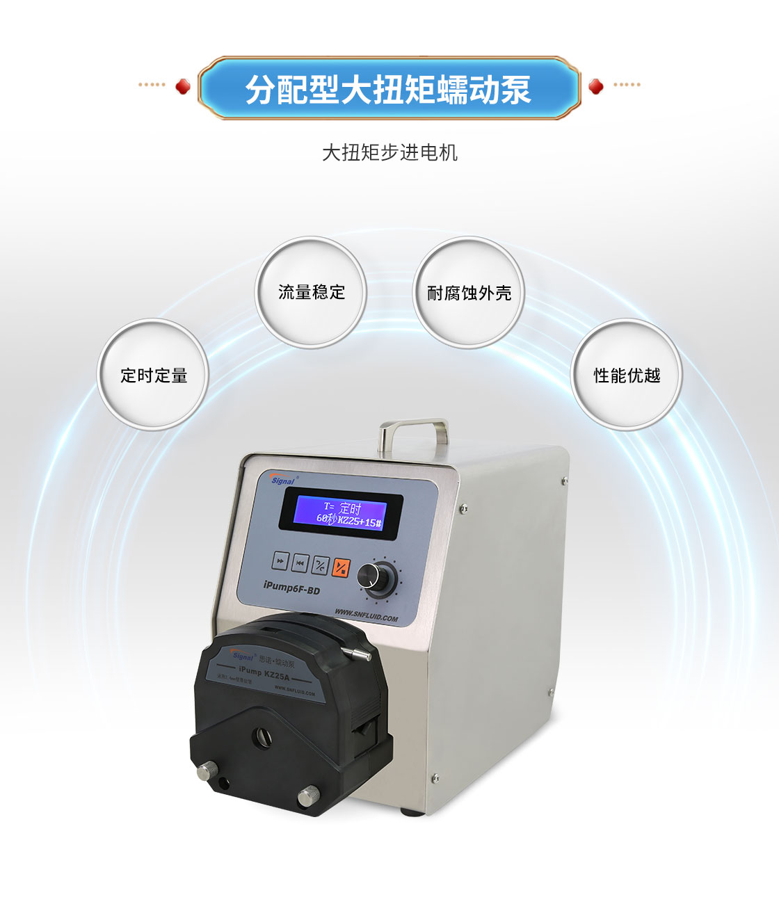 2.大扭矩步進電機驅動,適合多泵頭串聯使用;